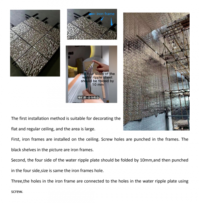 Kedua, keempat sisi pelat riak air harus dilipat 10MM, lalu dilubangi pada keempat sisi, ukurannya sama dengan lubang rangka besi.