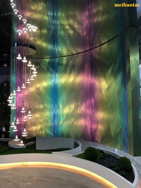 Lobi Dekorasi Lembaran Baja Tahan Karat Warna Pelangi Pola Laser Kustomisasi Canggih